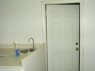 Once I entered the room beyond the boiler room, I saw a kitchen area and yet another, empty, room with no windows. Foolishly, I didn't take a picture of the room at the time because it was empty. I did notice there was a big hole in the ceiling of the empty room. I did not know at the time it was water damage from a leak (which occurred in 2004) for which condo association money had been allocated, but the damage had obviously had not been fixed! So why was the money paid out? Note: this photo is from the kitchen area facing the boiler room door.